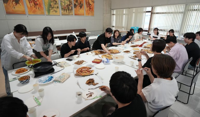 今日は、大学の学食を借りて交流会を開きました。 研究室でいいことがあった時の定番「前田かしわ店の手羽先」と、みんなで用意した美味しい食事で、楽しい時間を過ごしました! 当研究室も全部で23名!これからまたみんなでいいデータ出していきましょう!